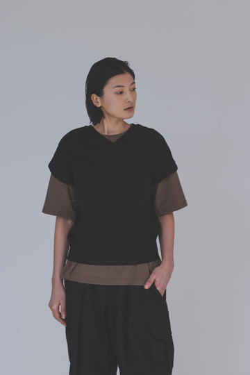 ベスト型で動きやすく前後どちらでも着られる設計で、インナーのデザインにマッチしやすい、見た目はシンプル、だけど中身はしっかりテックな1枚。