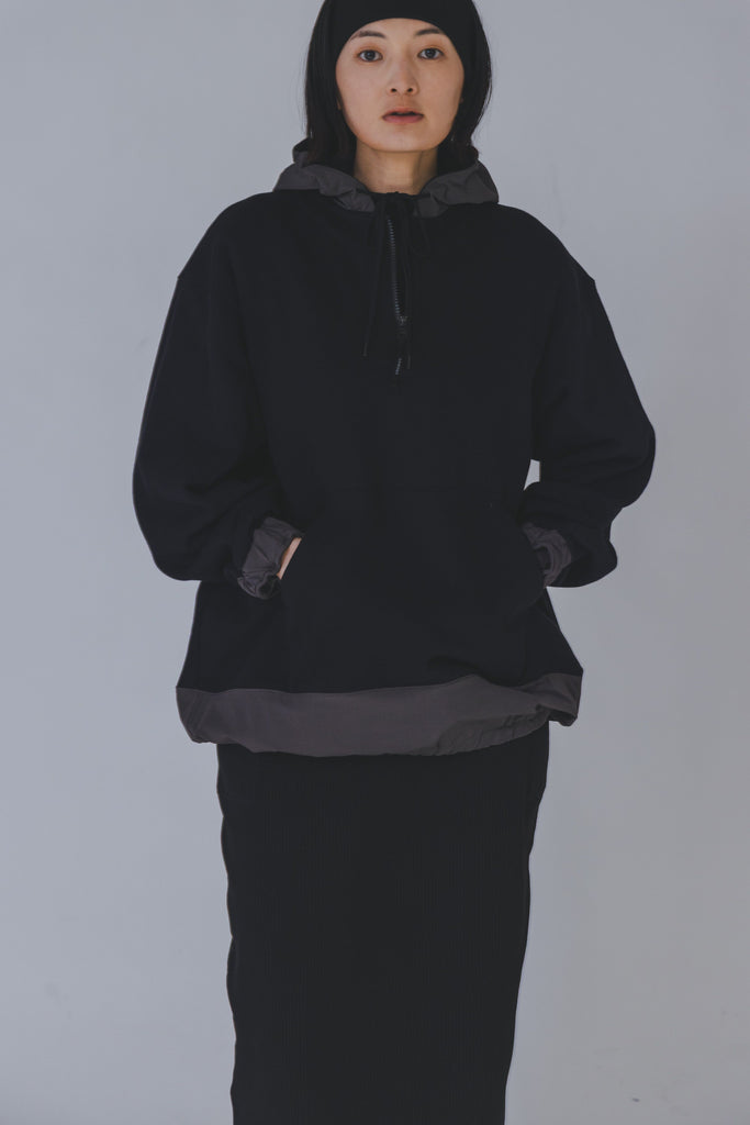 肉厚ながら軽く、柔らかく着心地の良い起毛裏毛をベースに、フードや裾、袖口には耐久性の高いPEストレッチリップストップを配しアクティブ要素を高めたスウェットフーディー。