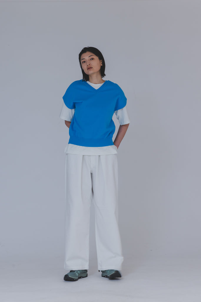 カットソーやシャツにレイヤードしやすいライトな着心地でムレにくく、急な天気や気温の変化にも対応しやすい万能デザイン。